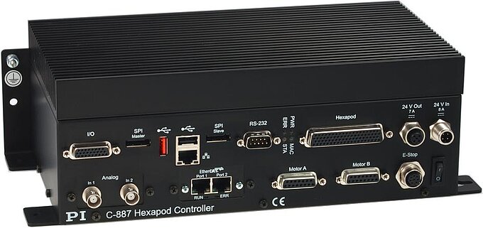 헥사포드 컨트롤러는 병렬 키네마틱(parallel-kinematic) 6DoF 시스템을 간단하고 직관적으로 제어합니다. 모든 목표 위치에 데카르트 좌표로 명령을 내릴 수 있습니다. 컨트롤러는 개별 스트럿을 제어하고, 그에 따라 플랫폼을 원하는 방향으로 움직일 수 있도록 계산합니다.