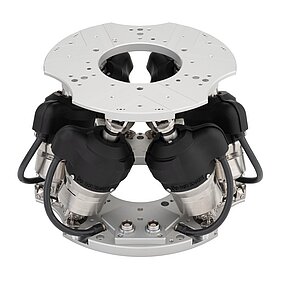 헥사포드는 X, Y, Z 세 가지 방향의 병진 운동 축과 ΘX, ΘY, ΘZ 세 가지 방향의 회전 운동 축의 6자유도로 하중을 이동, 위치 제어, 정렬할 수 있는 병렬 키네마틱(parallel-kinematic) 모션 플랫폼입니다. 스튜어트 플랫폼이라고도 하는 일반적인 구조의 헥사포드는 조인트를 통해 베이스 플레이트와 하중을 운반하는 모션 플랫폼에 연결된 6개의 길이 조절식 액추에이터로 구성됩니다. 병렬 키네마틱(parallel-kinematic) 설계가 적용된 헥사포드는 높은 반복 정밀도, 역동성, 안정성을 바탕으로 복잡한 다축 모션 프로파일을 구현할 수 있습니다. 크기 또한 매우 작습니다.
