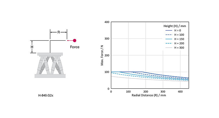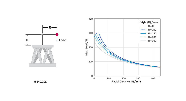 The parallel-kinematic design for 6 degrees of freedom makes it significantly more compact and stiffer than comparable serial kinematic systems. The advantages over serial, i.e., stacked systems, are mainly the much better path accuracy and repeatability. In addition, the moved mass is lower and allows improved dynamics which is the same for all motion axes. Cable management is not a problem because cables are not moved.