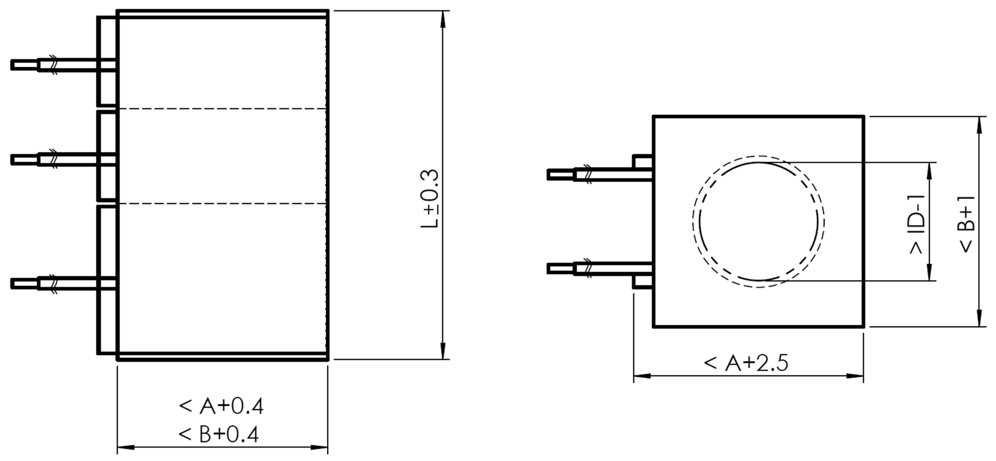 Length L: tolerance ±0.3 mm