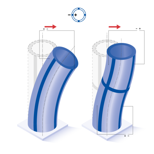 Polarization directionDepending on the contacting and attachment of the electrodes, different bending occur in the axial, radial and lateral directions. For more information see >> Operating Modes.