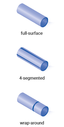 Electrode designsIn addition to multi-segmented tubes, other designs are possible, such as full-surface, 4‑segmented or wrap‑around. See rigth column.