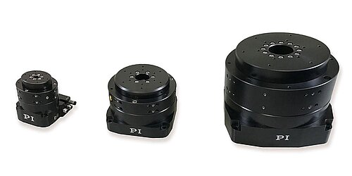 회전 모션에 대한 요구 사항은 크기, 허용 하중 및 포지셔닝 정확도 측면에서 그 범위가 매우 다양합니다. PI는 에어 베어링, 토크 모터 구동, 모터 구동식 웜기어 결합, 소형 피에조 모터 스테이지, 직교 팁-틸트 장착 옵션이 있는 특수 고니오미터 스테이지 등 모든 종류의 모터 구동화 및 가이드 옵션을 갖춘 스테이지를 제공합니다. 모두 해당 리니어, 수직 및 XY 스테이지와 함께 다축 조합으로 장착할 수 있습니다.