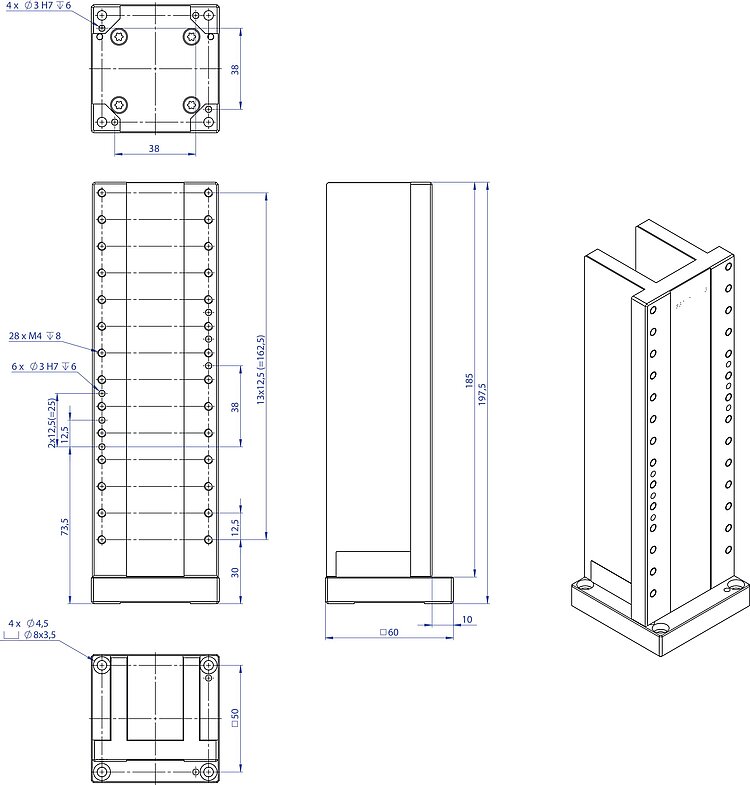Adapter bracket for vertical mounting of L-8x6 stages; length 197.5 mm; incl. mounting kit