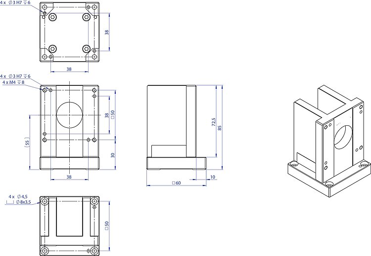 Adapter bracket for vertical mounting of L-8x6 stages; length 85 mm; incl. mounting kit