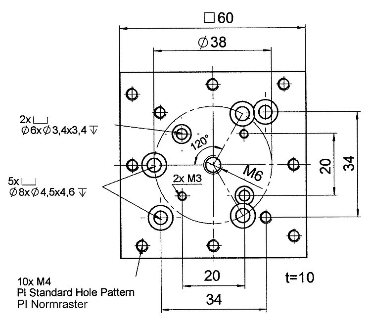For Mounting Stages w/o PI Standard Hole Pattern (M-105/M-106, M-126 etc.) on Stages with PI Standard Hole Pattern and Vice Versa