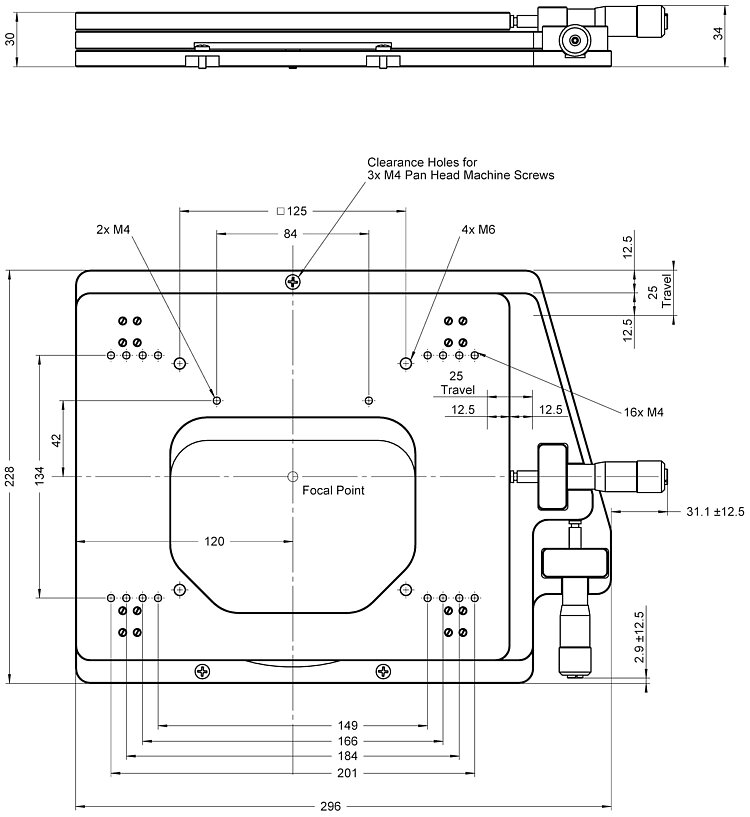 It is possible to mount piezo nanopositioners from the P-545 PInano® and P-541 / P-542 series onto the platform of the M-545. Adapter plates from PI are available for combining with other piezo nanopositioners.